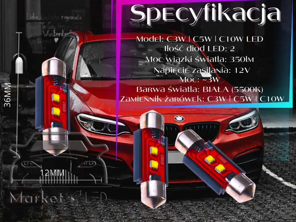 Zamiennik żarówek: C3W, C5W, C10W, Festoon, C21W, L1005, SV8.5, S8.5.