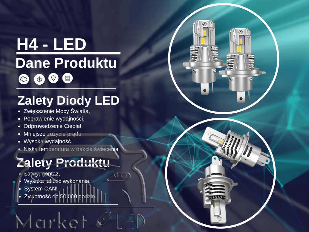 Żarówki H4 LED - 1 do 1 - CAN Bardzo Mocne Zamiennik - Bez Adapterów + 400%