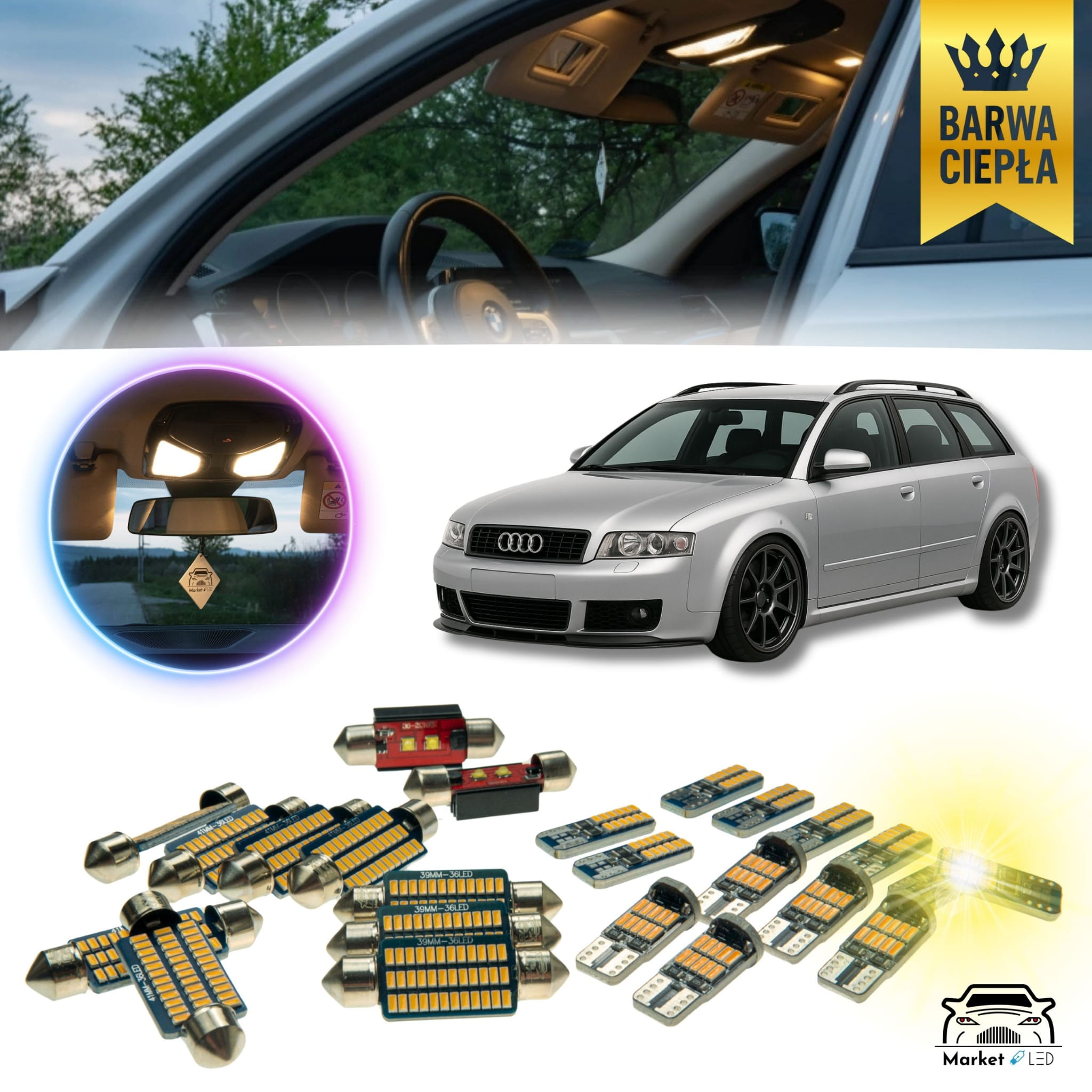 AUDI A4 B6 AVANT - Zestaw Oświetlenie wnętrza LED - Barwa Ciepła!