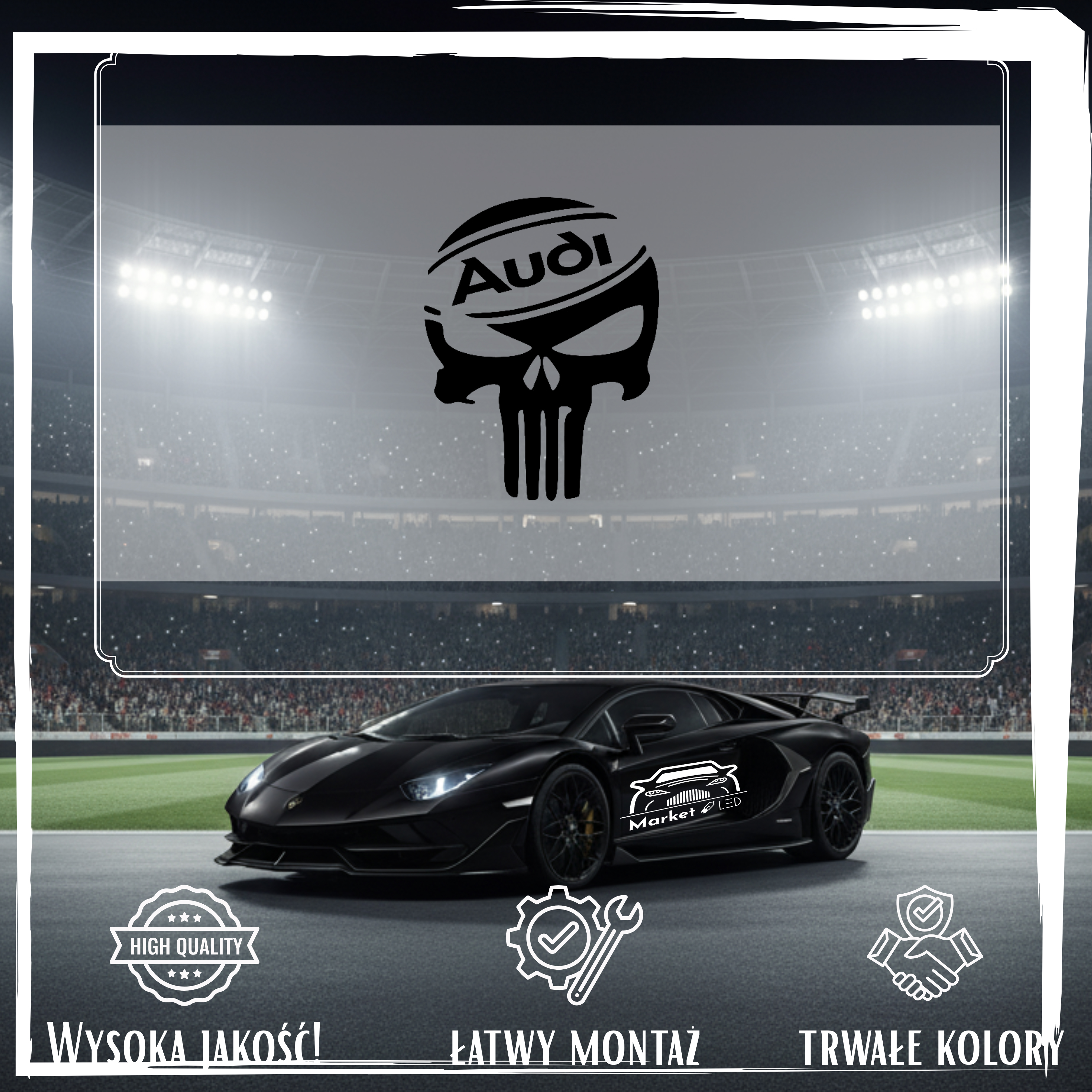 Naklejka na Samochód AUDI PUNISHER CZASZKA– Wycinana Ploterem, Trwała Folia ORACAL