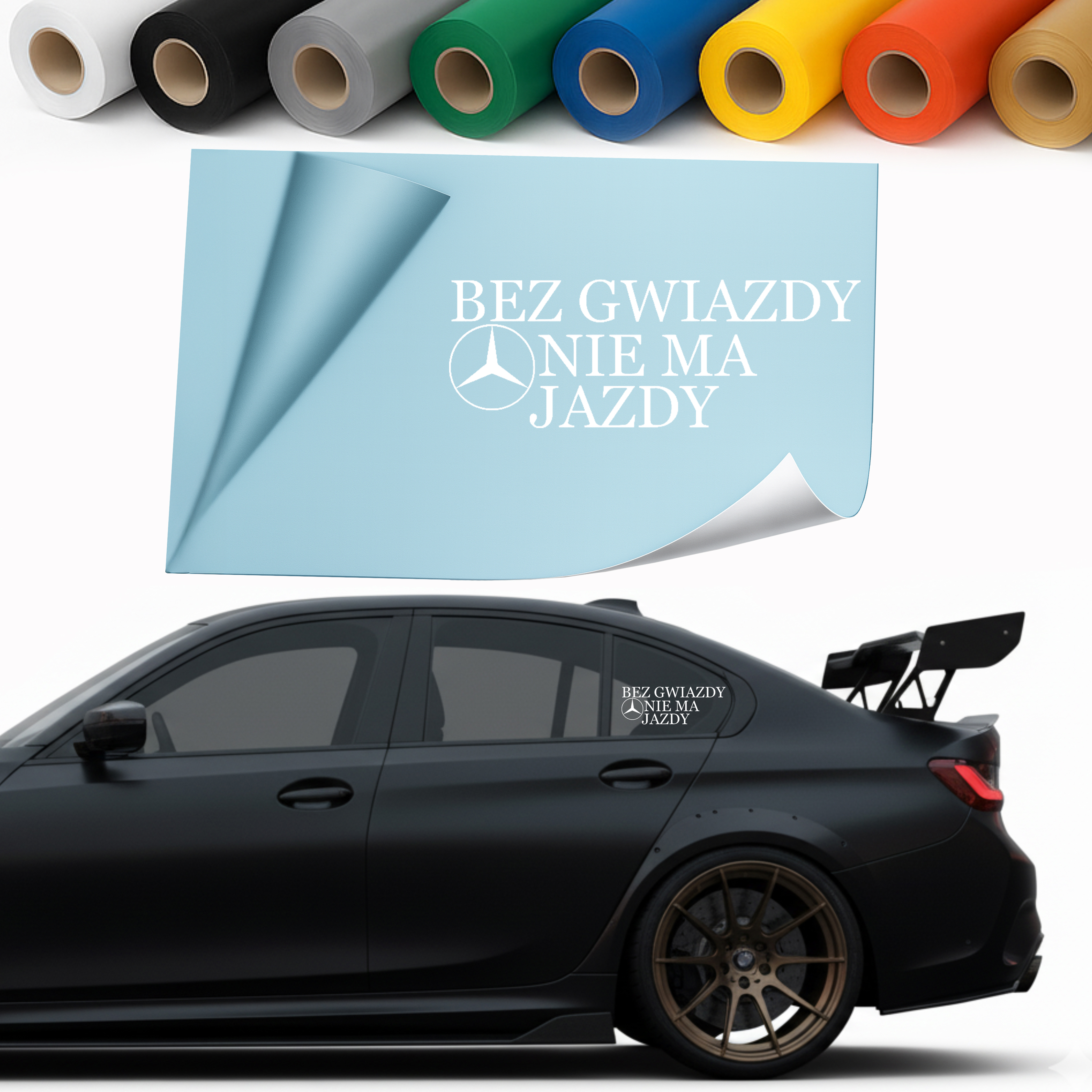 Naklejka na Samochód BEZ GWIAZDY NIE MA JAZDY!– Wycinana Ploterem, Trwała Folia ORACAL