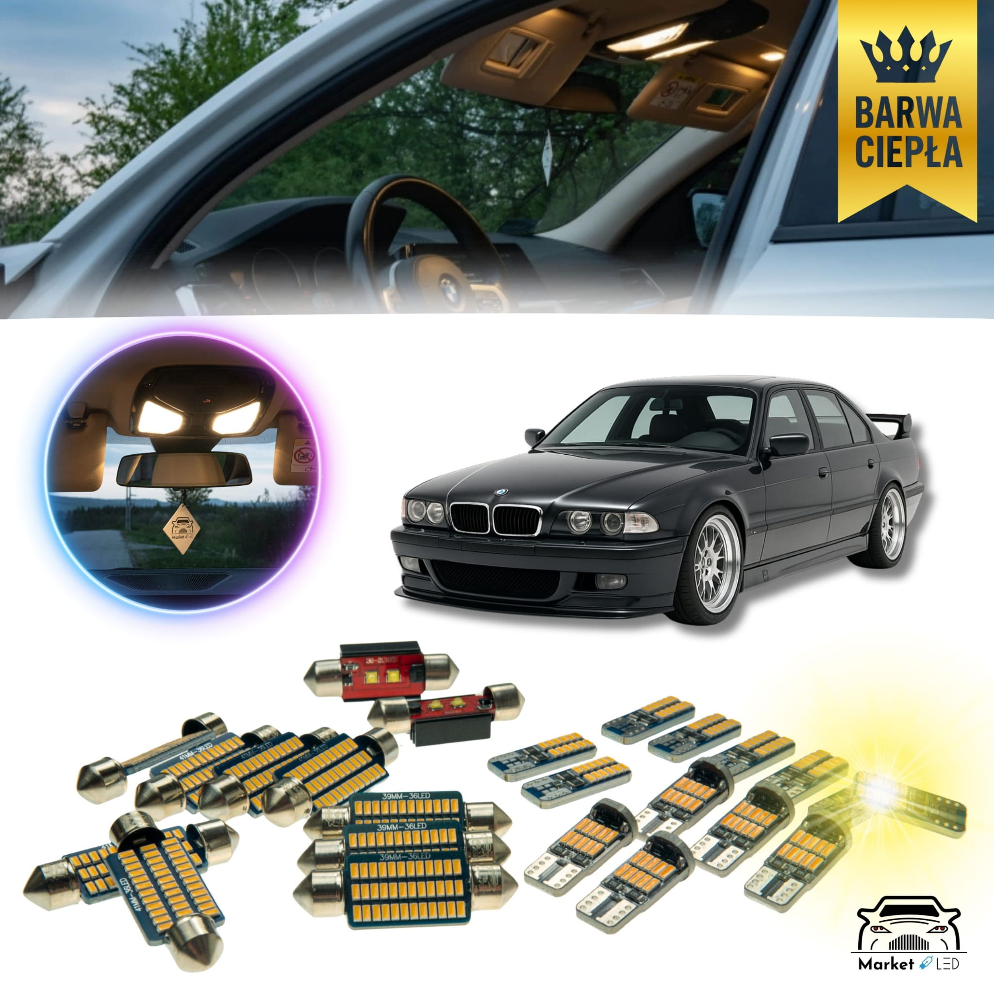 BMW E38 - Zestaw Oświetlenie wnętrza LED- Barwa Ciepła!