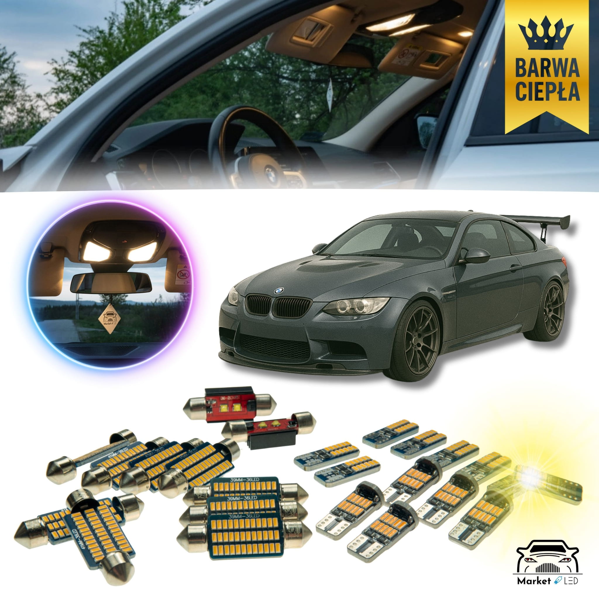 BMW E92/ E93 - Zestaw Oświetlenie wnętrza LED - Barwa Ciepła!