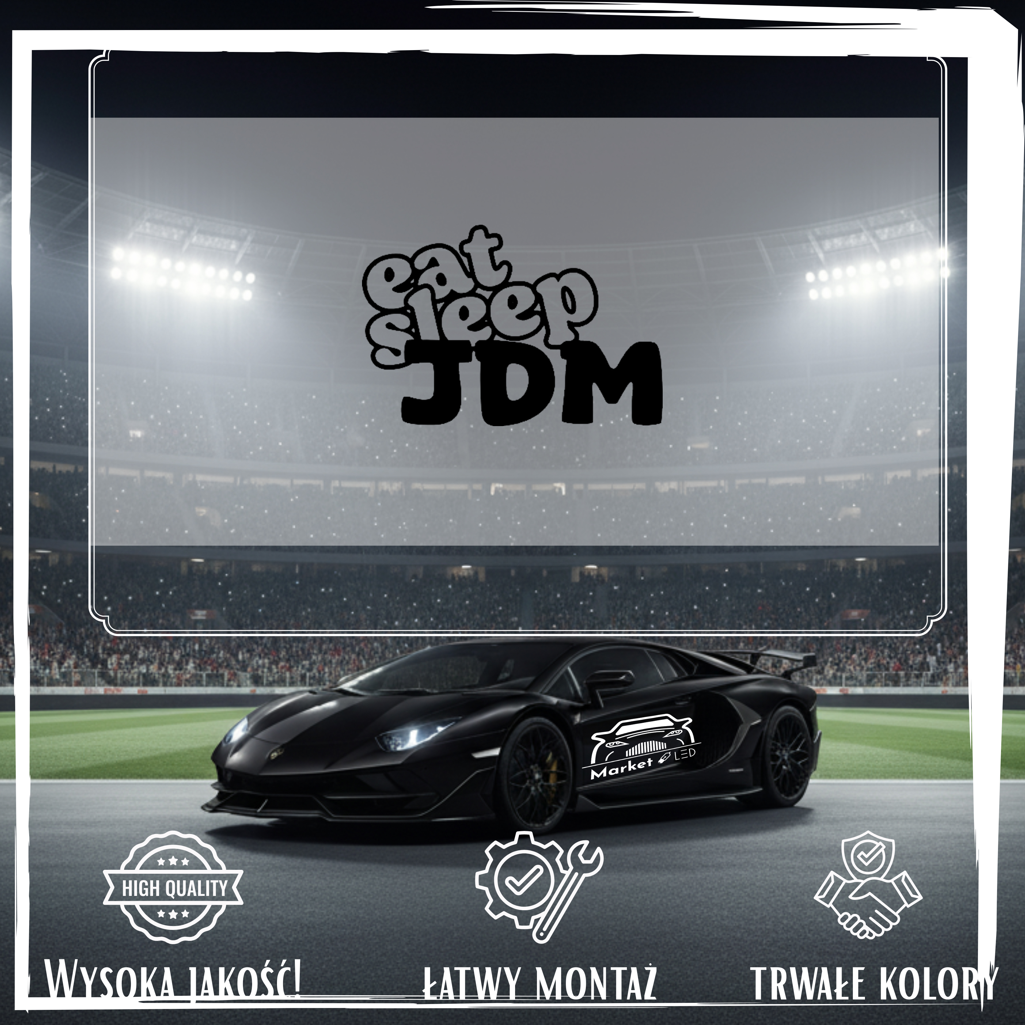 Szukasz efektownej i trwałej naklejki na samochód? Postaw na wyrazisty wzór EAT SLEEP JDM, precyzyjnie wycinany ploterem. Zapewniamy, że to nie jest zwykły nadruk, lecz profesjonalna folia ORACAL – maksymalna odporność na deszcz, słońce i ekstremalne temperatury.