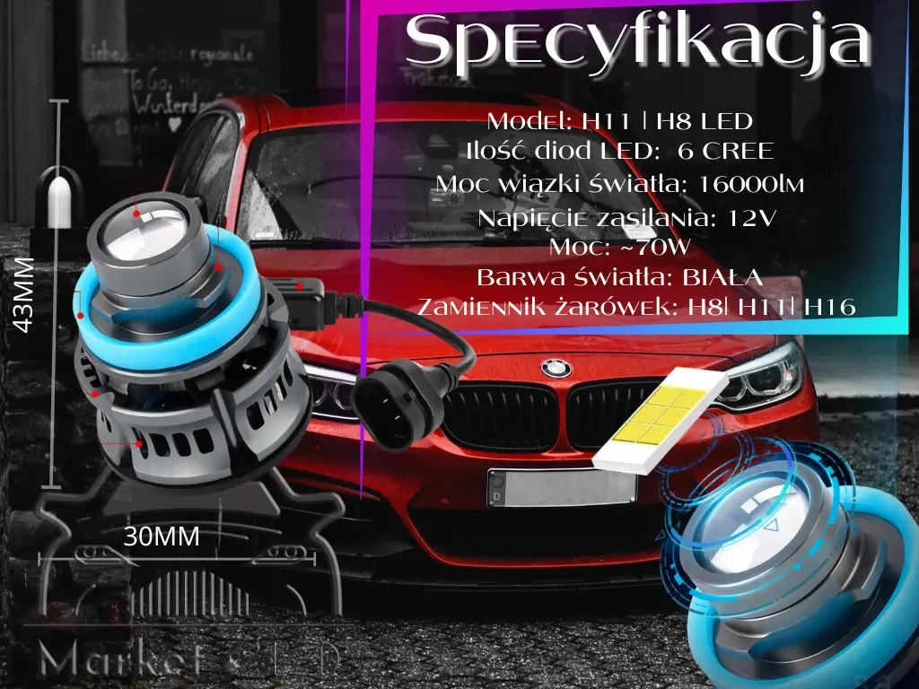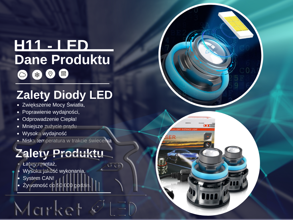 Żarówki LED H11/H8 z Soczewką Laserową 2500lm – Precyzyjne i Skoncentrowane Oświetlenie Samochodowe!
