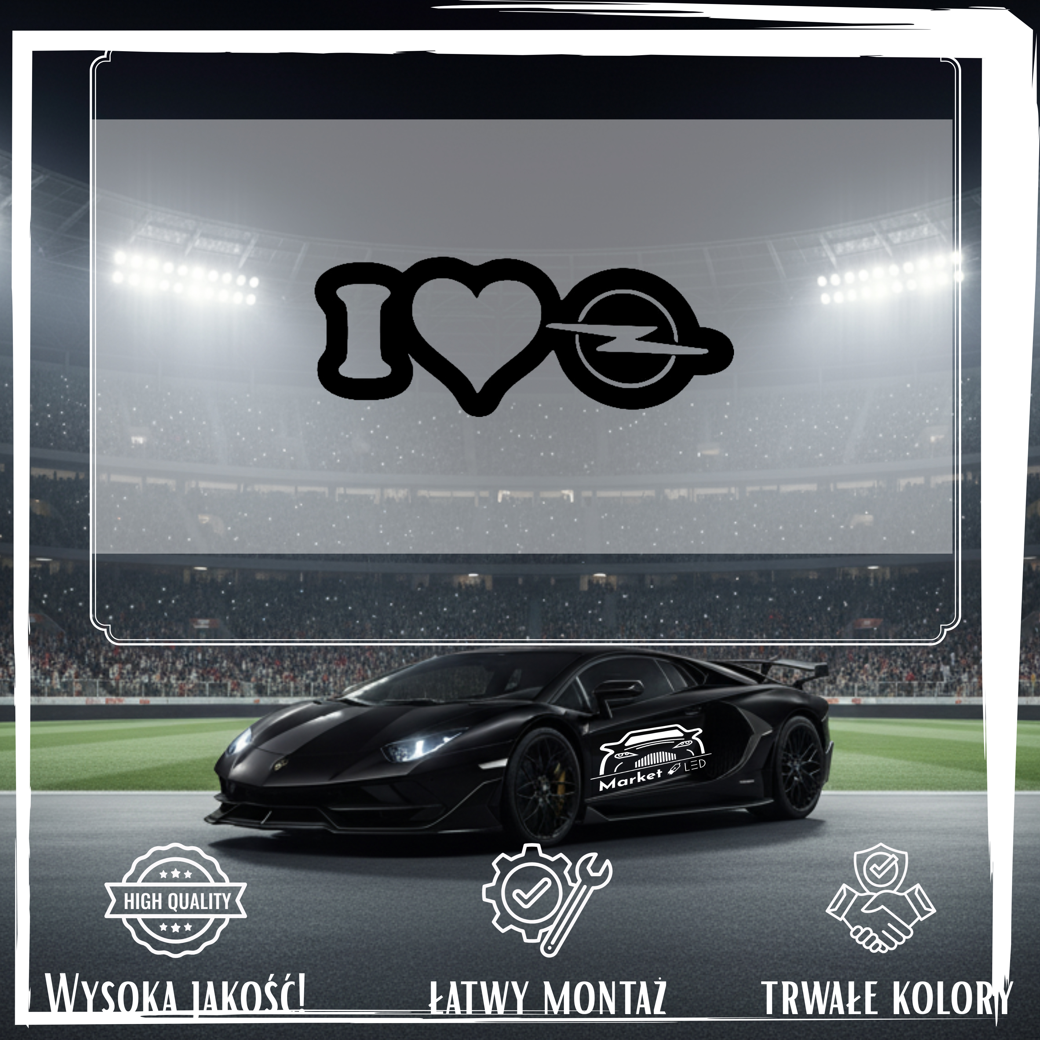 Naklejka na Samochód I LOVE OPEL Logo– Wycinana Ploterem, Trwała Folia ORACAL