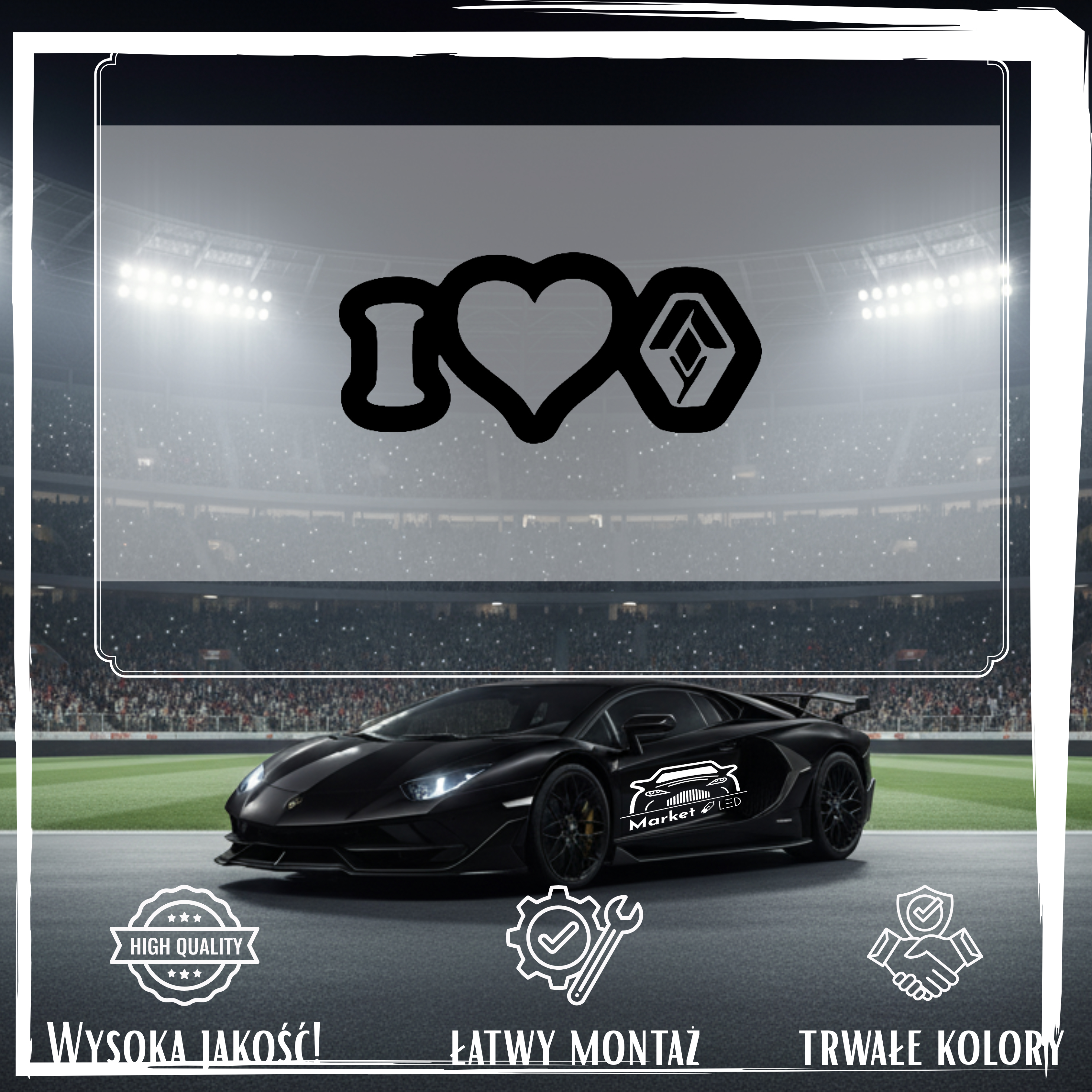 Naklejka na Samochód I LOVE RENAULT Logo– Wycinana Ploterem, Trwała Folia ORACAL