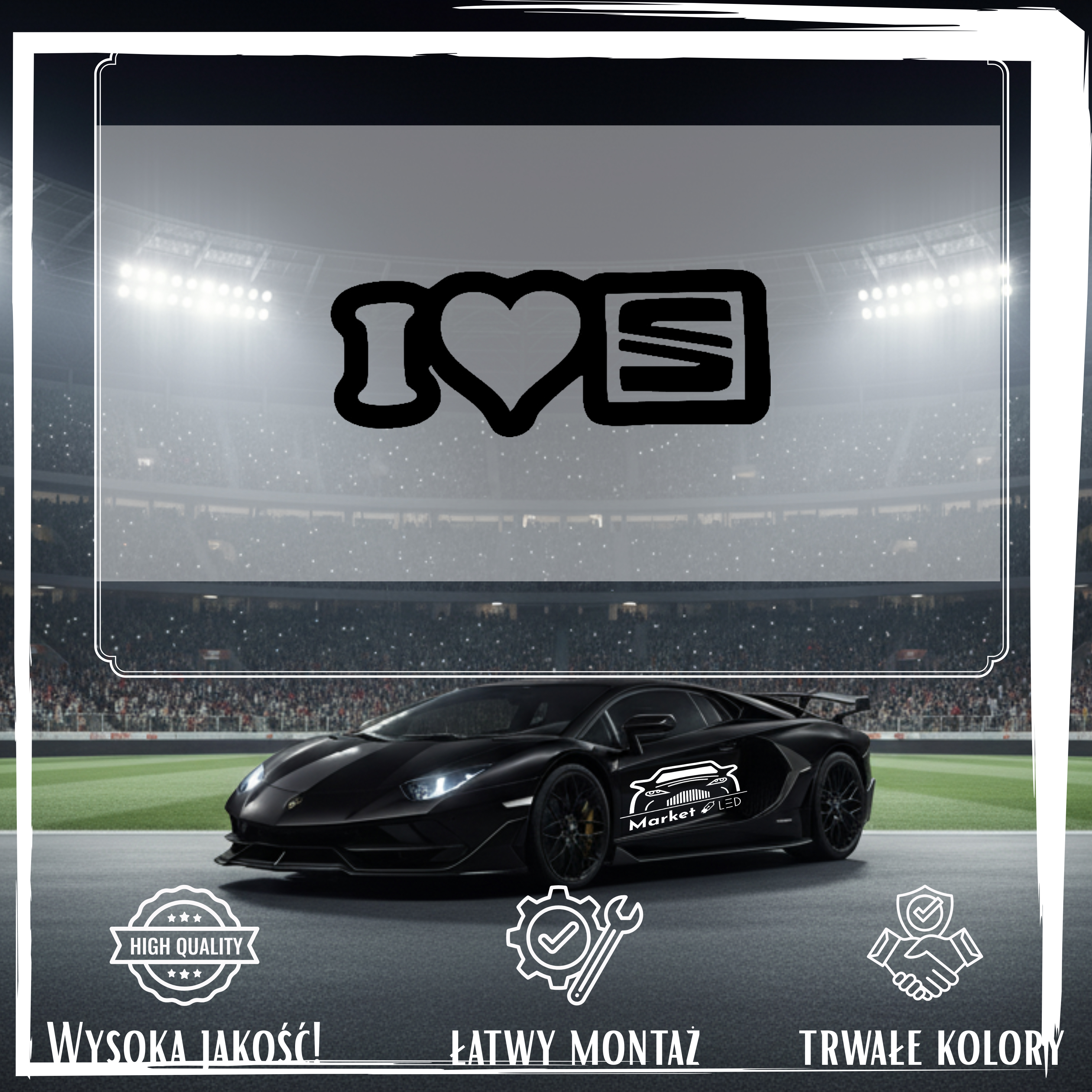 Naklejka na Samochód I LOVE SEAT Logo– Wycinana Ploterem, Trwała Folia ORACAL