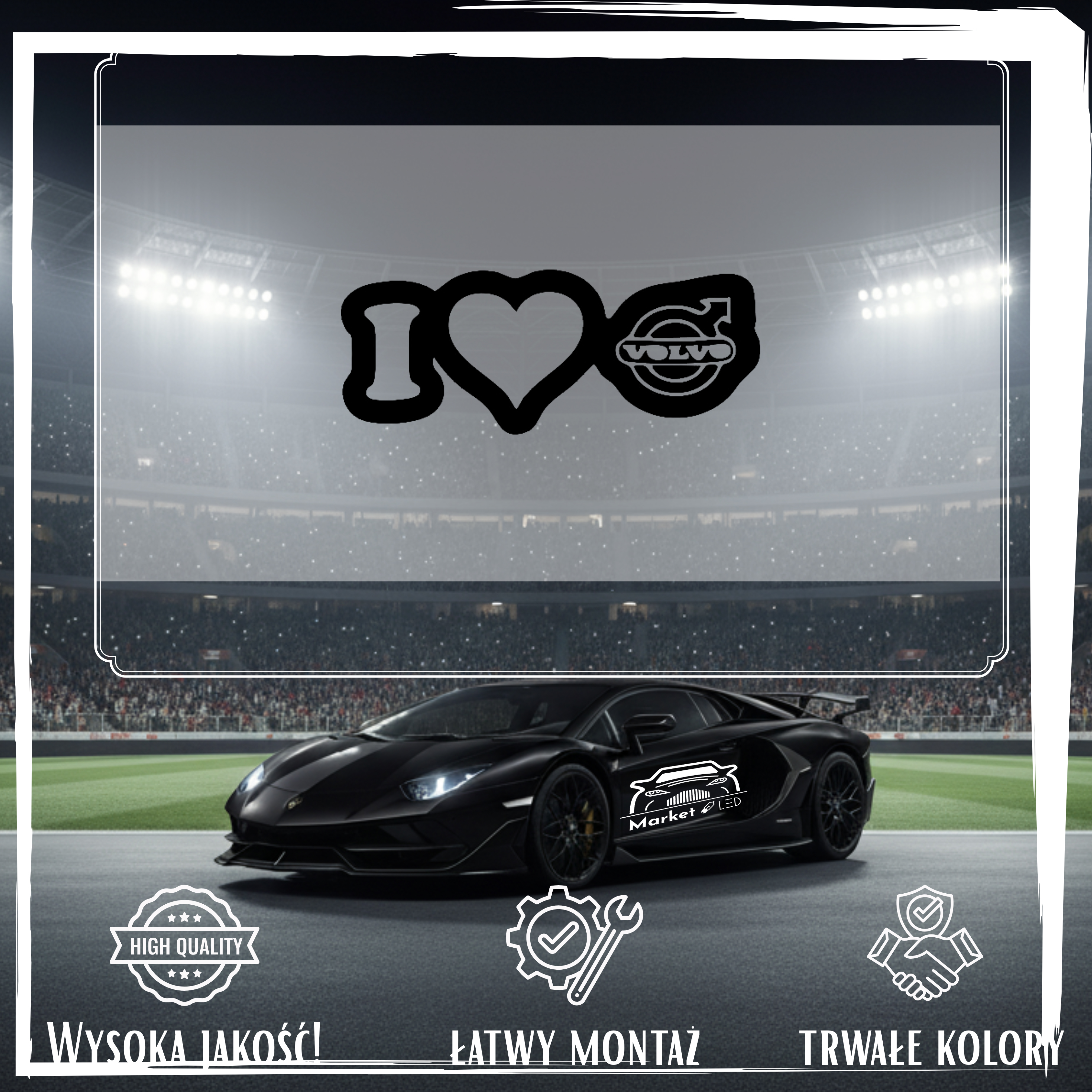 Naklejka na Samochód I LOVE VOLVO Logo– Wycinana Ploterem, Trwała Folia ORACAL