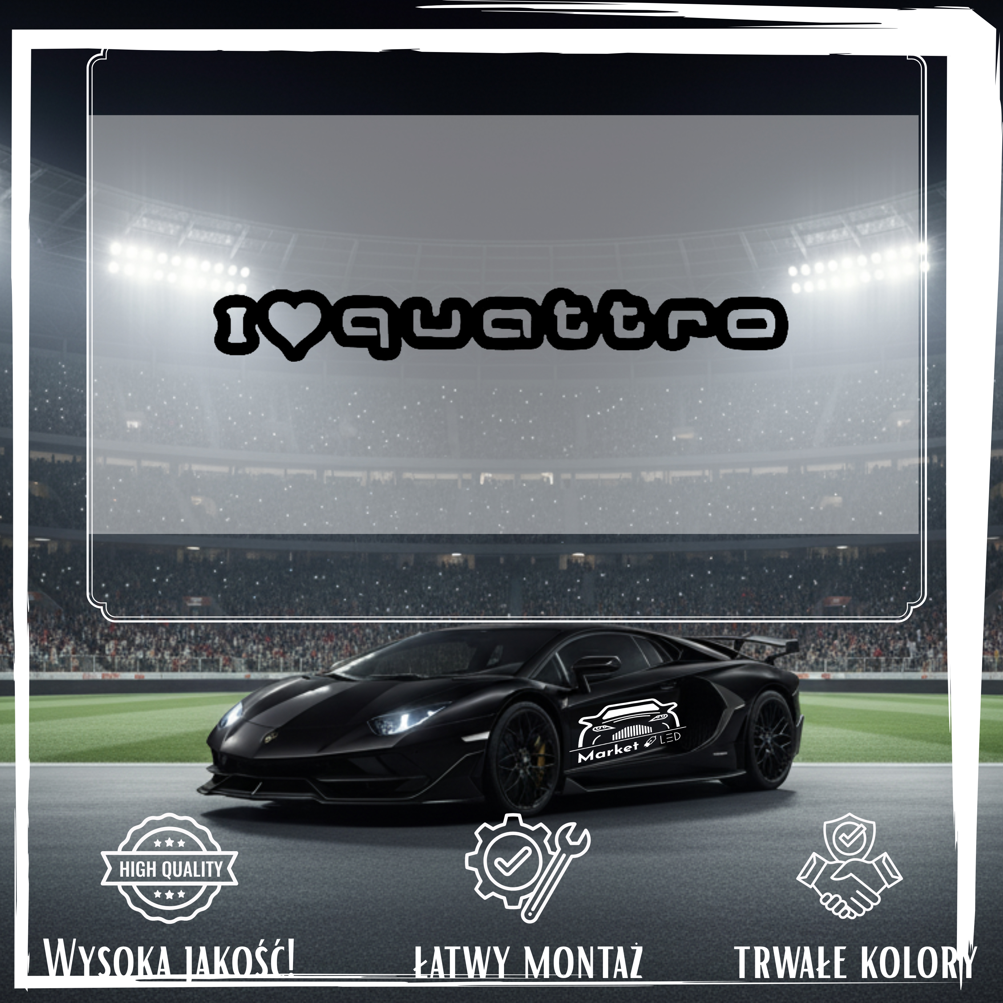 Naklejka na Samochód I Love quattro– Wycinana Ploterem, Trwała Folia ORACAL