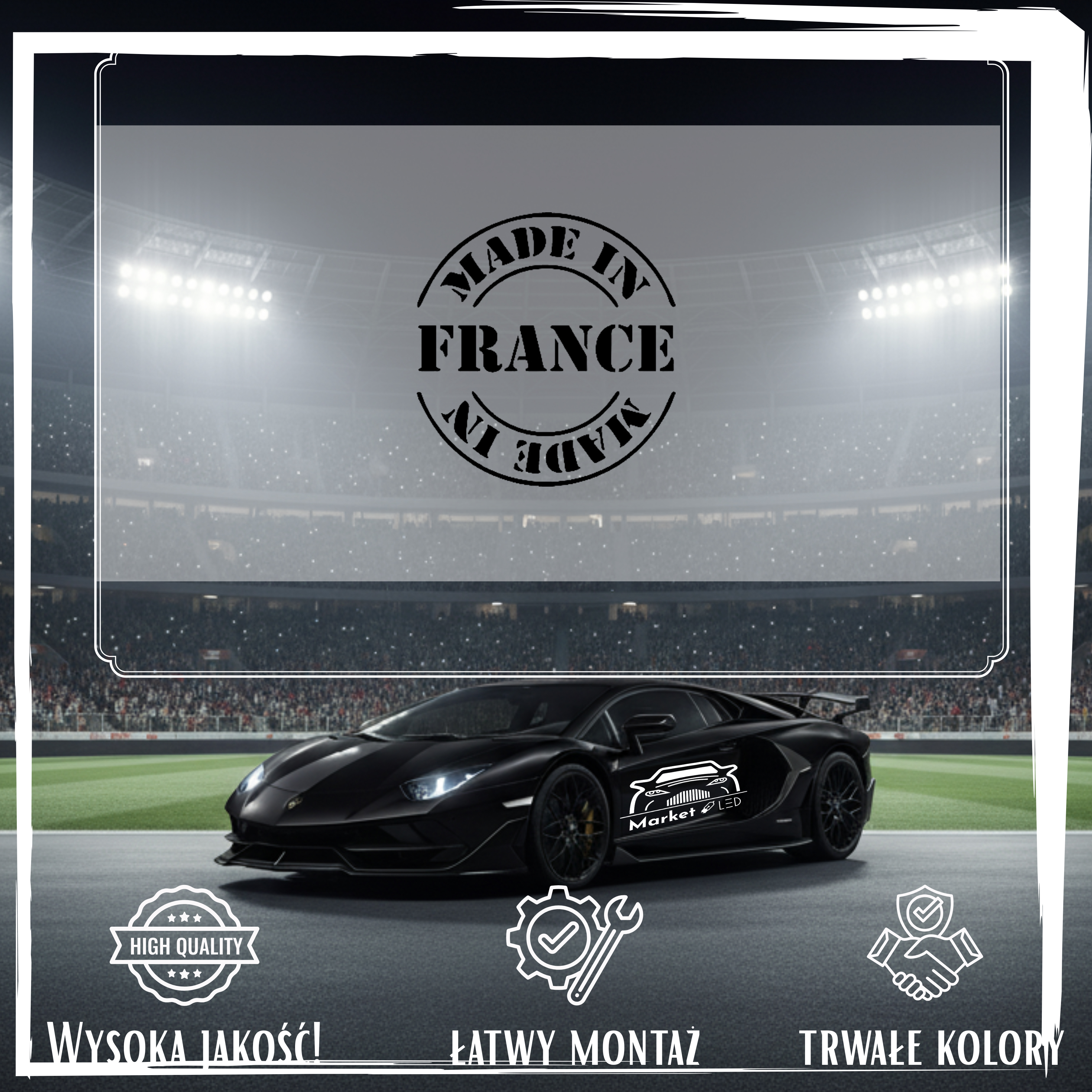 Szukasz efektownej i trwałej naklejki na samochód? Postaw na wyrazisty wzór MADE IN FRANCE (Renault Peugeot Citroen), precyzyjnie wycinany ploterem. Zapewniamy, że to nie jest zwykły nadruk, lecz profesjonalna folia ORACAL – maksymalna odporność na deszcz, słońce i ekstremalne temperatury.