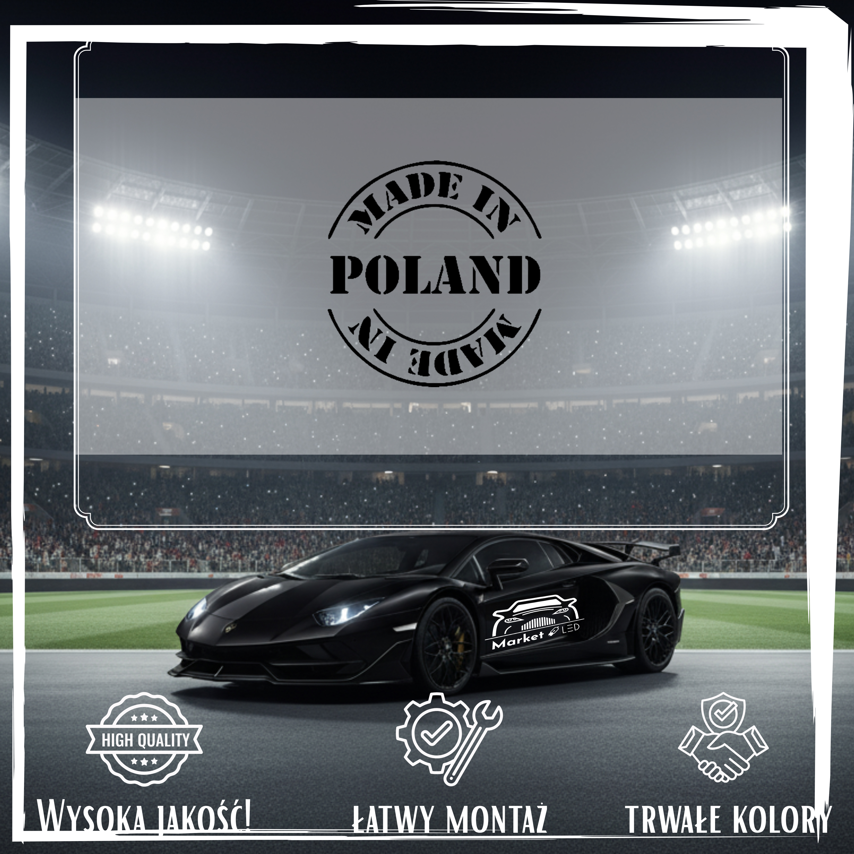 Szukasz efektownej i trwałej naklejki na samochód? Postaw na wyrazisty wzór MADE IN POLAND, precyzyjnie wycinany ploterem. Zapewniamy, że to nie jest zwykły nadruk, lecz profesjonalna folia ORACAL – maksymalna odporność na deszcz, słońce i ekstremalne temperatury.