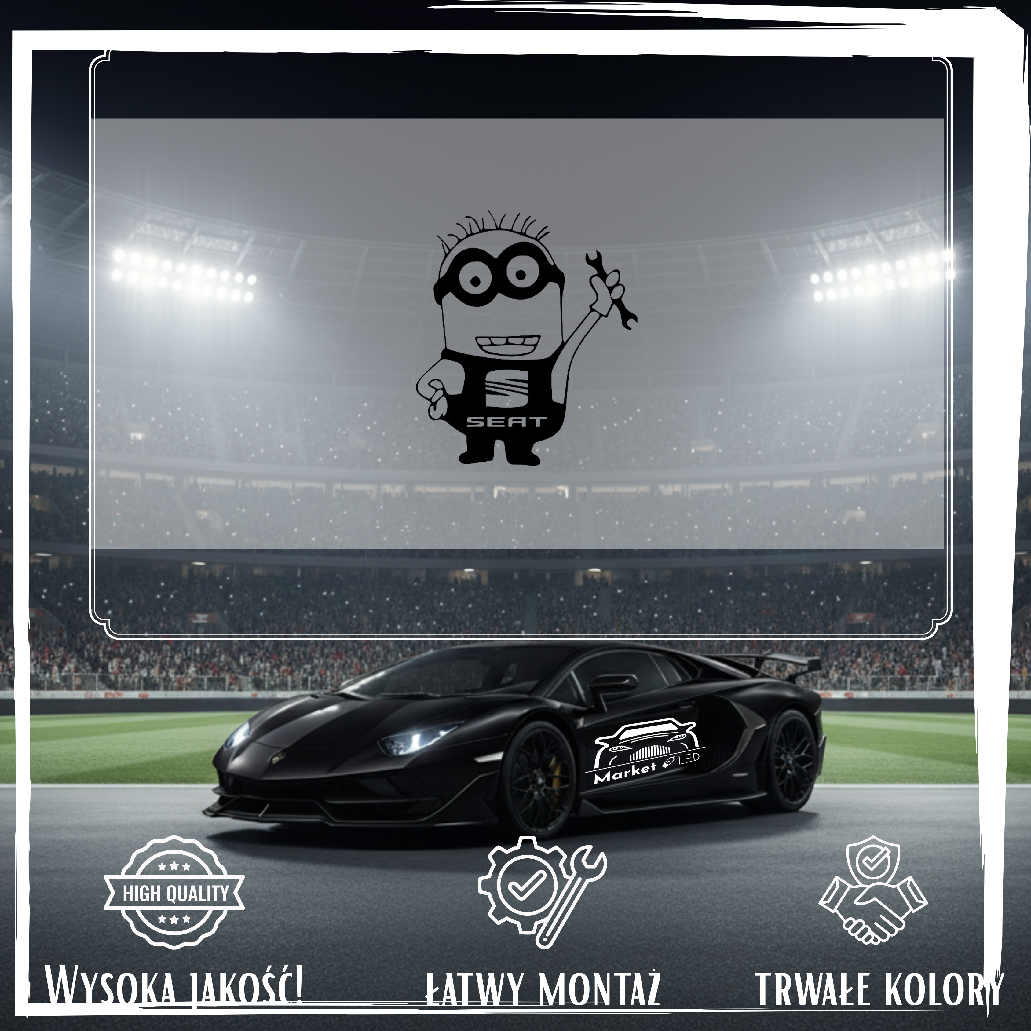 Szukasz efektownej i trwałej naklejki na samochód? Postaw na wyrazisty wzór MINIONEK SEAT, precyzyjnie wycinany ploterem. Zapewniamy, że to nie jest zwykły nadruk, lecz profesjonalna folia ORACAL – maksymalna odporność na deszcz, słońce i ekstremalne temperatury.