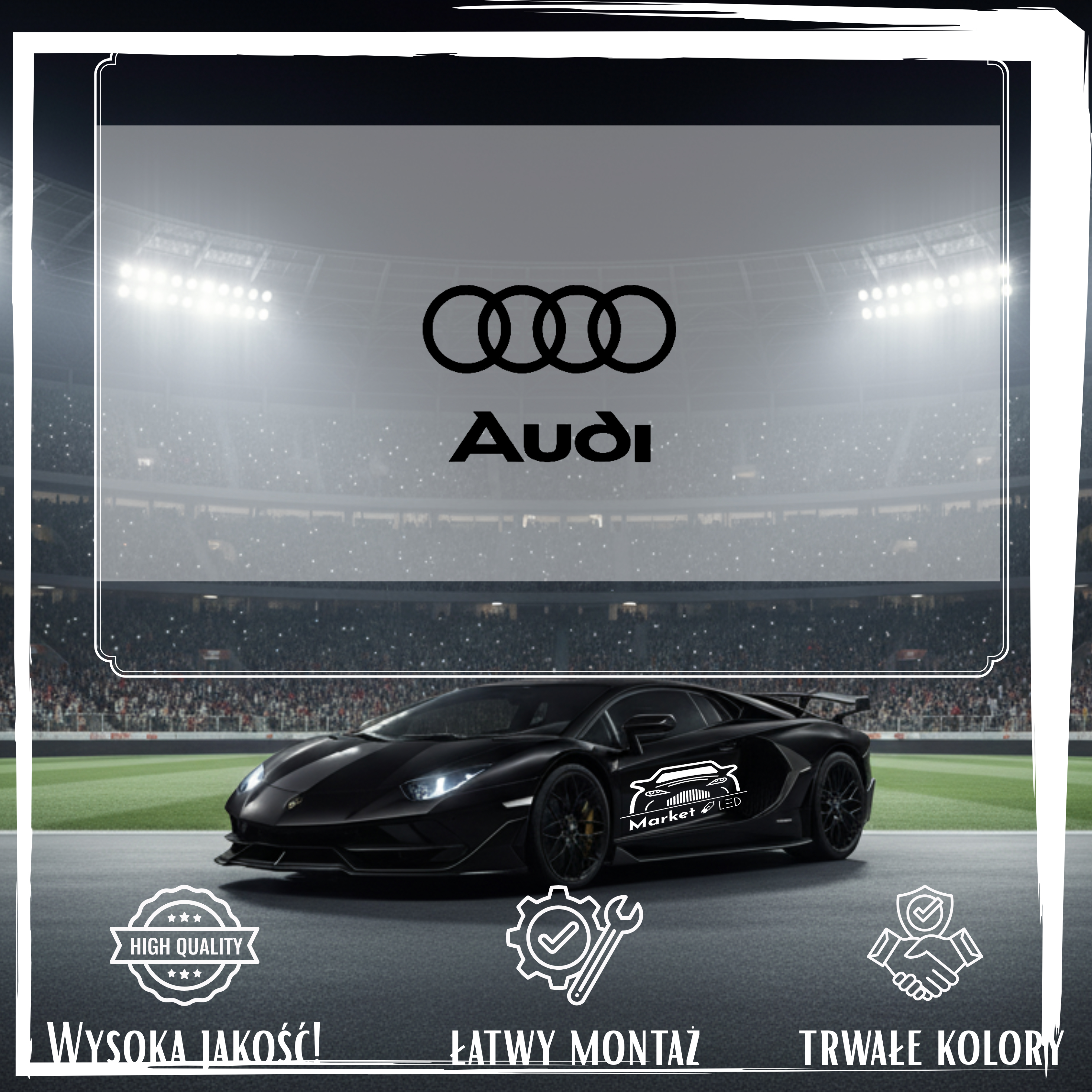 Szukasz efektownej i trwałej naklejki na samochód? Postaw na wyrazisty wzór AUDI Logo W07, precyzyjnie wycinany ploterem. Zapewniamy, że to nie jest zwykły nadruk, lecz profesjonalna folia ORACAL – maksymalna odporność na deszcz, słońce i ekstremalne temperatury.