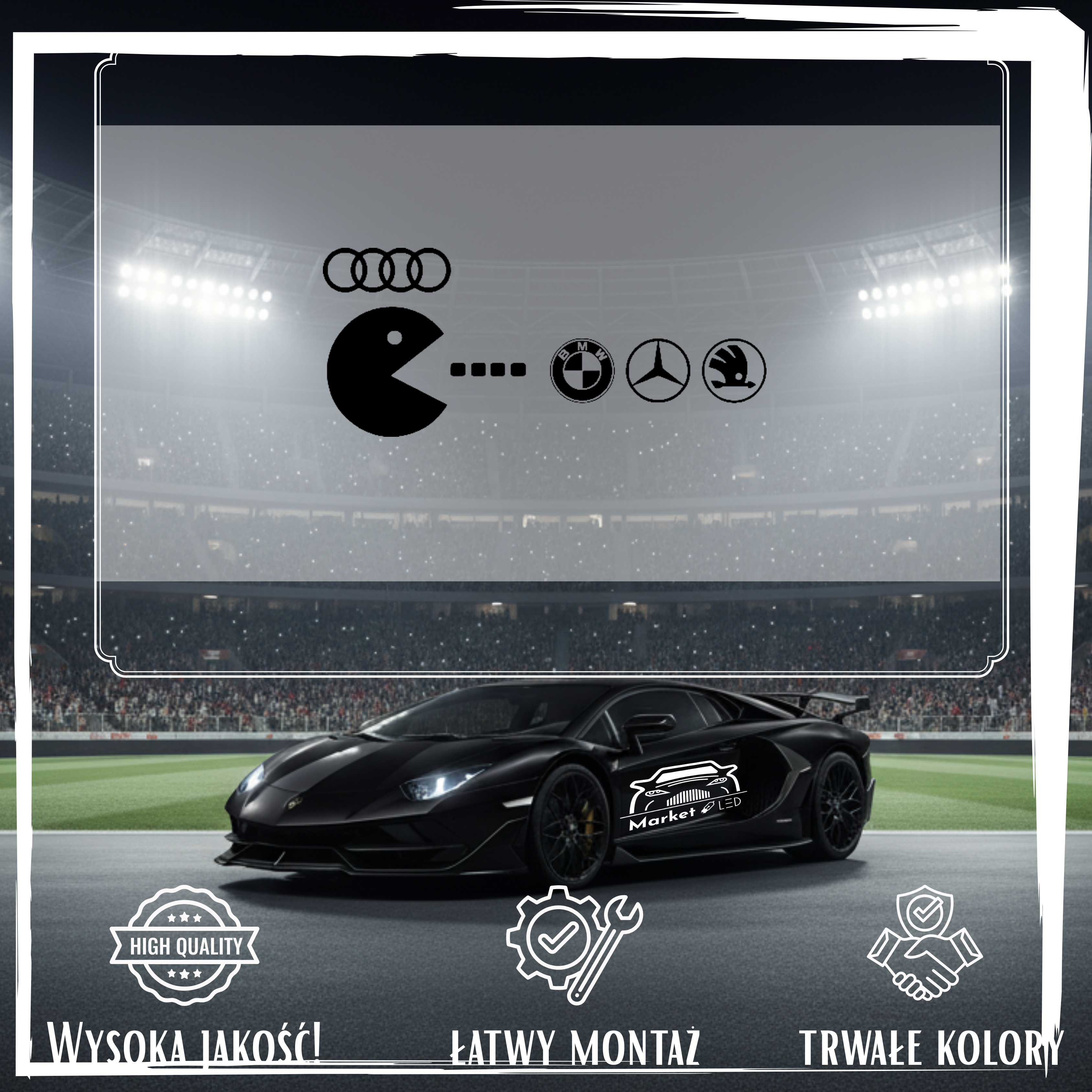 Naklejka na Samochód PACKMAN |BMW-Mercedes-Skoda|– Wycinana Ploterem, Trwała Folia ORACAL