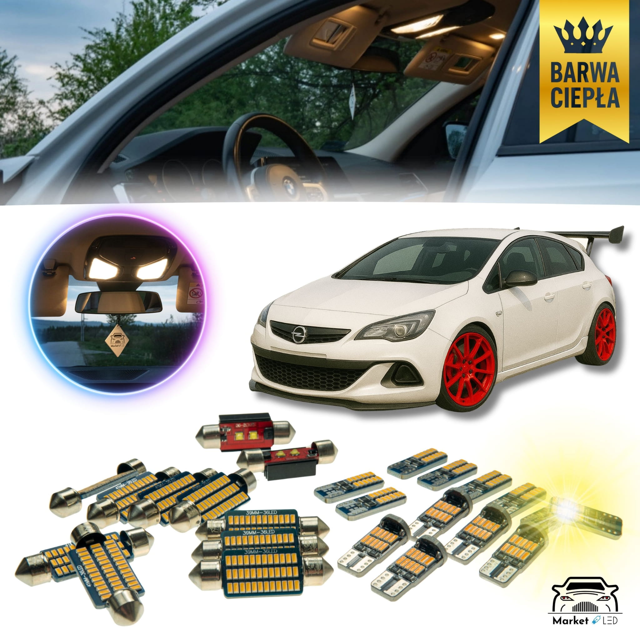 OPEL ASTRA J IV - Zestaw Oświetlenie wnętrza LED - Barwa Ciepła!