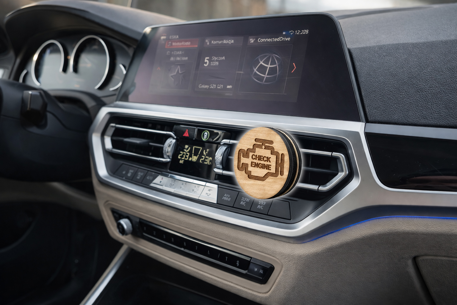 Odświeżacz powietrza do samochodu Check Engine | Drewniany dyfuzor na kratkę