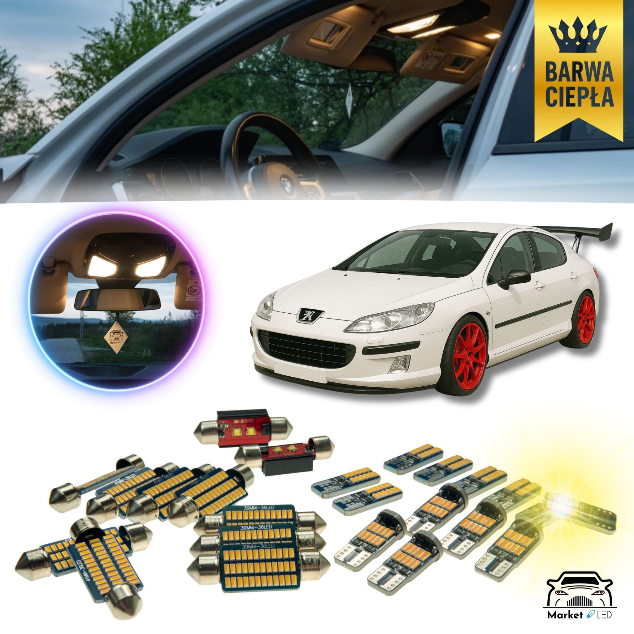 PEUGEOT 407 - Zestaw Oświetlenie wnętrza LED - Barwa Ciepła!