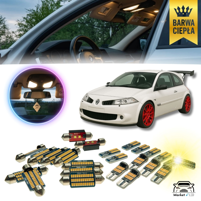 RENAULT MEGANE 2 - Zestaw Oświetlenie wnętrza LED - Barwa Ciepła!