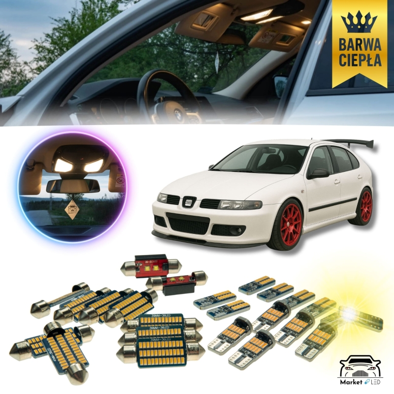 SEAT LEON 1M - Zestaw Oświetlenie wnętrza LED - Barwa Ciepła!