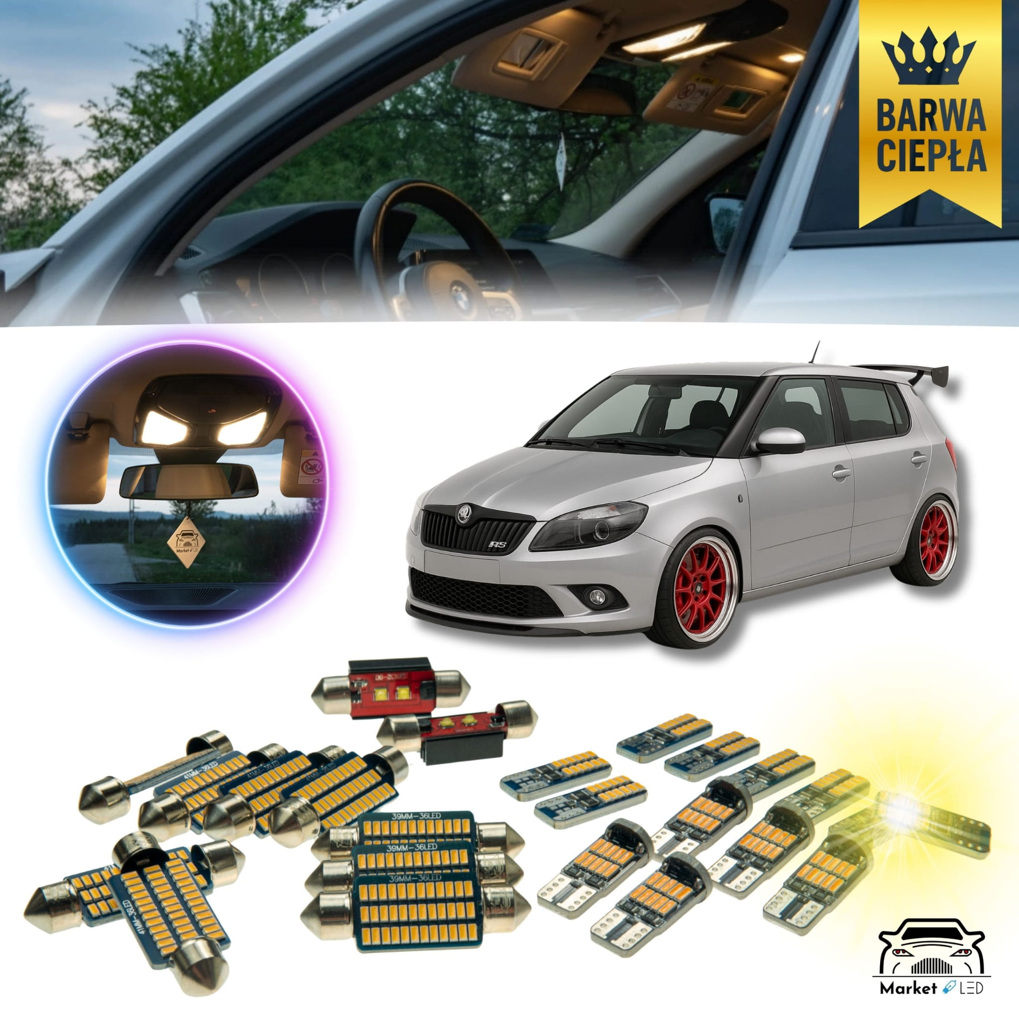 SKODA FABIA 2 - Zestaw Oświetlenie wnętrza LED - Barwa Ciepła!