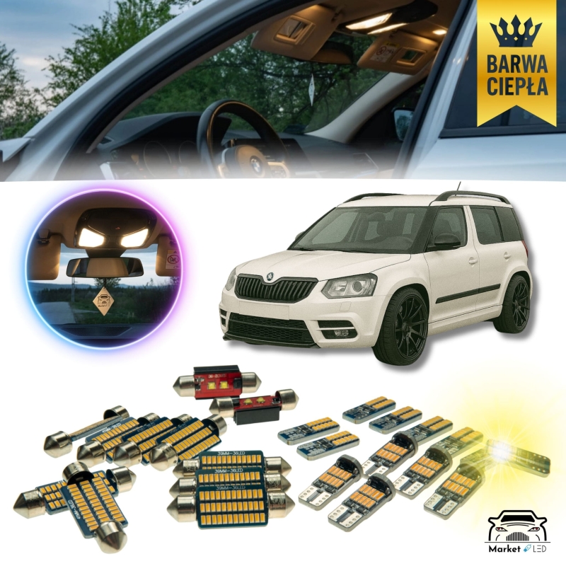 SKODA YETI 2009- Zestaw Oświetlenie wnętrza LED - Barwa Ciepła!