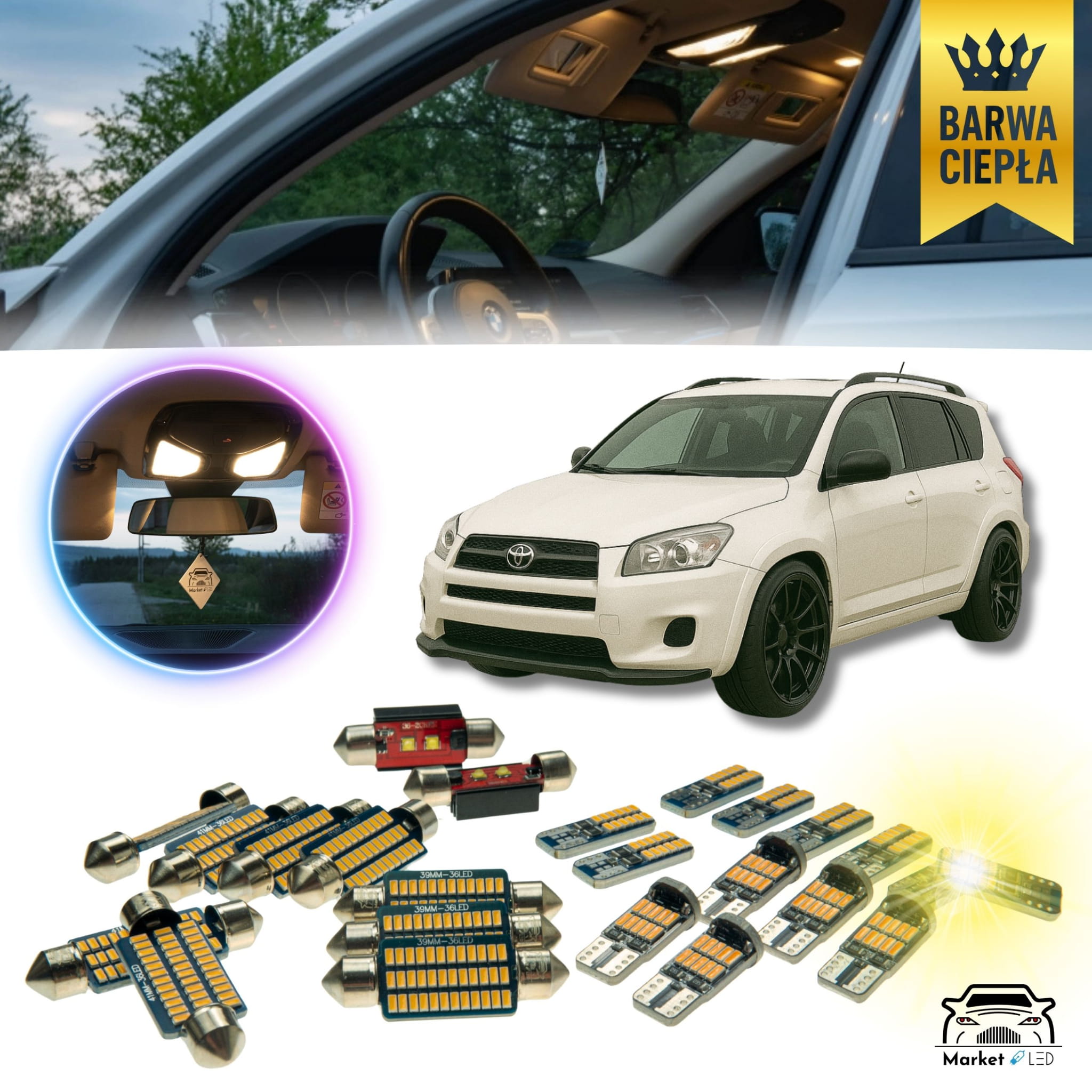 Toyota RAV 4 III - Zestaw Oświetlenie wnętrza LED - Barwa Ciepła!