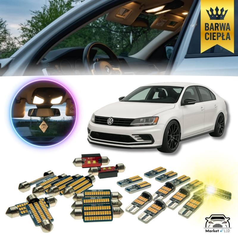 Komplet Żarówek LED do VW Jetta VI Sedan – Samochodowe Oświetlenie Wnętrza w Ciepłej Barwie