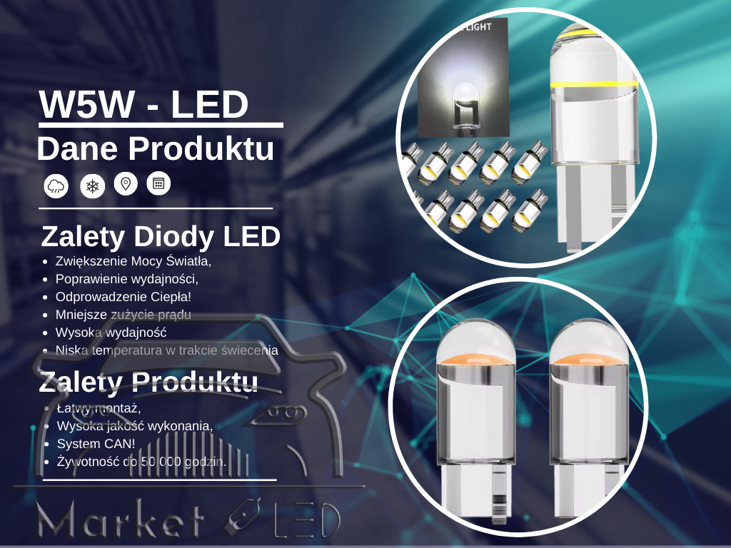 | Typ trzonka | T10 / W5W (zamiennik W3W, W10W, W16W, WY5W) |