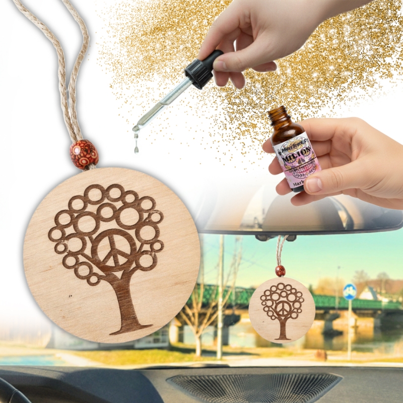 Odmień wnętrze swojego samochodu dzięki zawieszce, która łączy w sobie kultowy symbol pokoju (Peace) z naturalnym motywem drzewa i luksusowym zapachem.