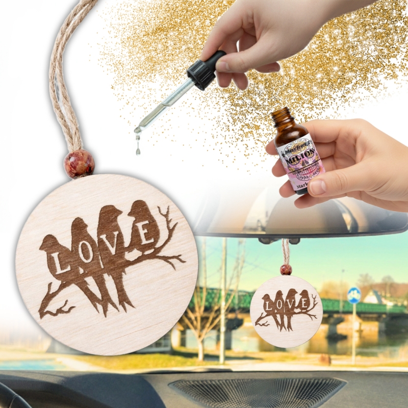 Dodaj styl i naturalny zapach do swojego otoczenia dzięki naszej unikalnej zawieszce z motywem zakochanych ptaków.