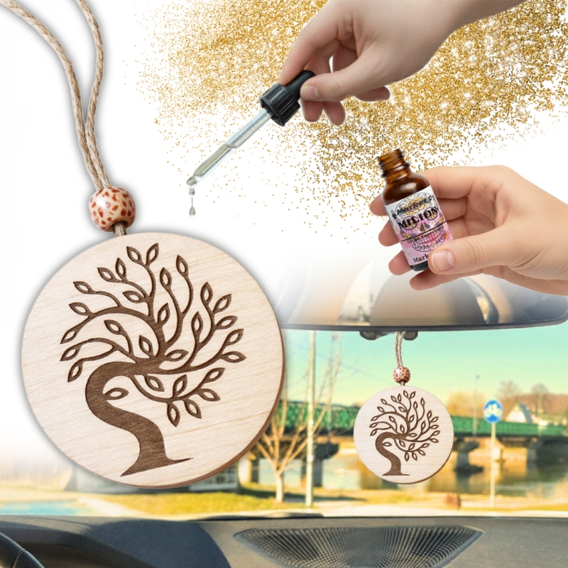 Drzewo Życia to symbol pomyślności, co czyni tę zawieszkę idealnym prezentem do nowego auta dla bliskiej osoby. Produkt można również wykorzystać jako odświeżacz w domowej garderobie lub biurze.